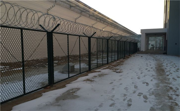 一般監獄護欄網使用的都是刀片刺繩,刀片刺繩又稱刀片刺絲、刀片刺網,是一種新型的防護網。目前,刀片刺繩用于許多國家的工礦企業、花園公寓、邊防哨所、軍事領域、監獄、拘留所、政府大樓和安全設施。
